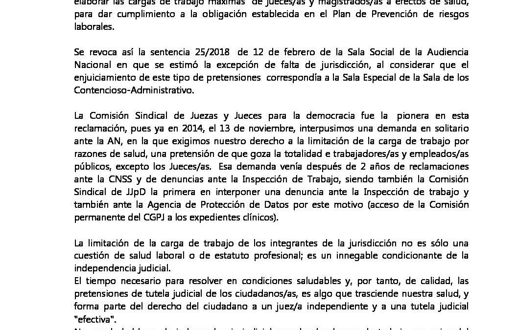 Victoria en la lucha por la cagra de trabajo saludable de jueces_as la competencia es del orden social marzo 2019 por Janire Recio | May 27, 2019